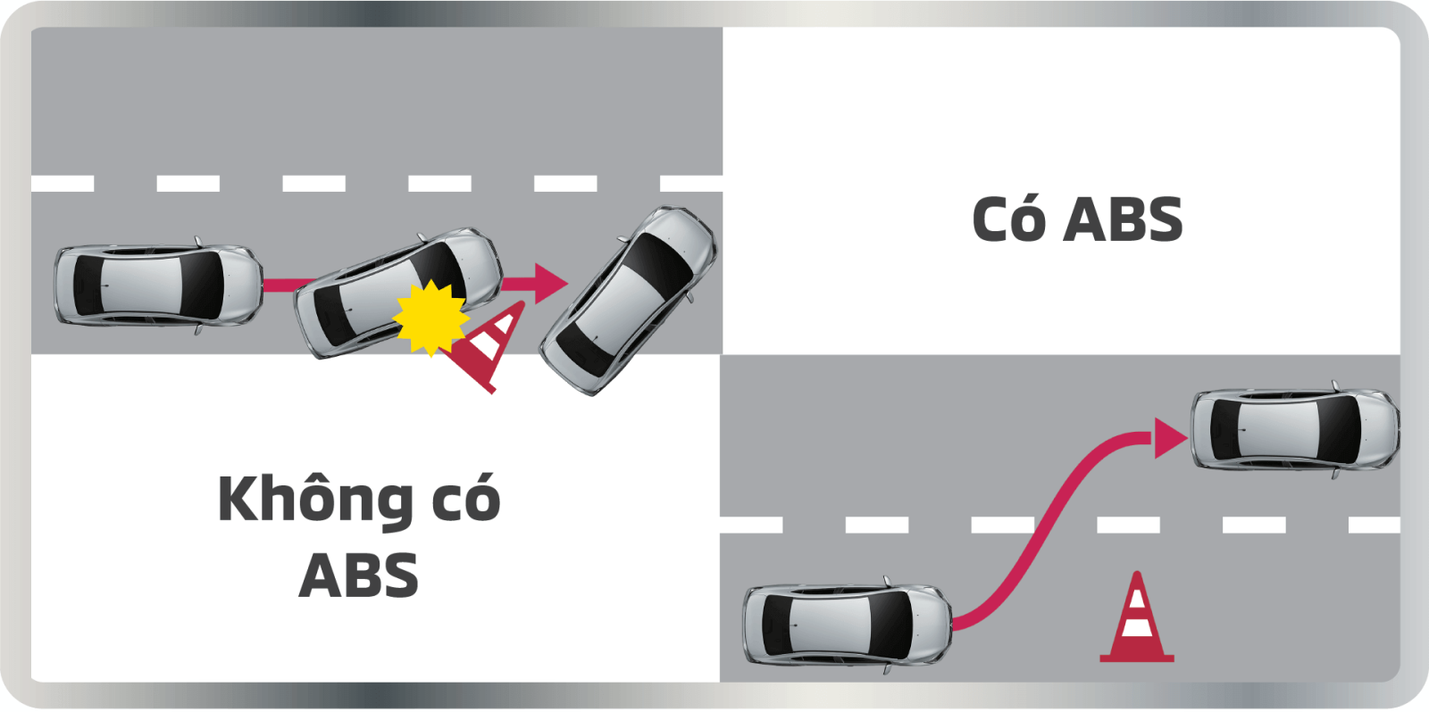 Giúp chống hiện tượng bó cứng phanh đồng thời phân phối lực phanh tối ưu giúp làm chủ tay lái khi phanh gấp trên đường trơn trượt và rút ngắn quãng đường phanh