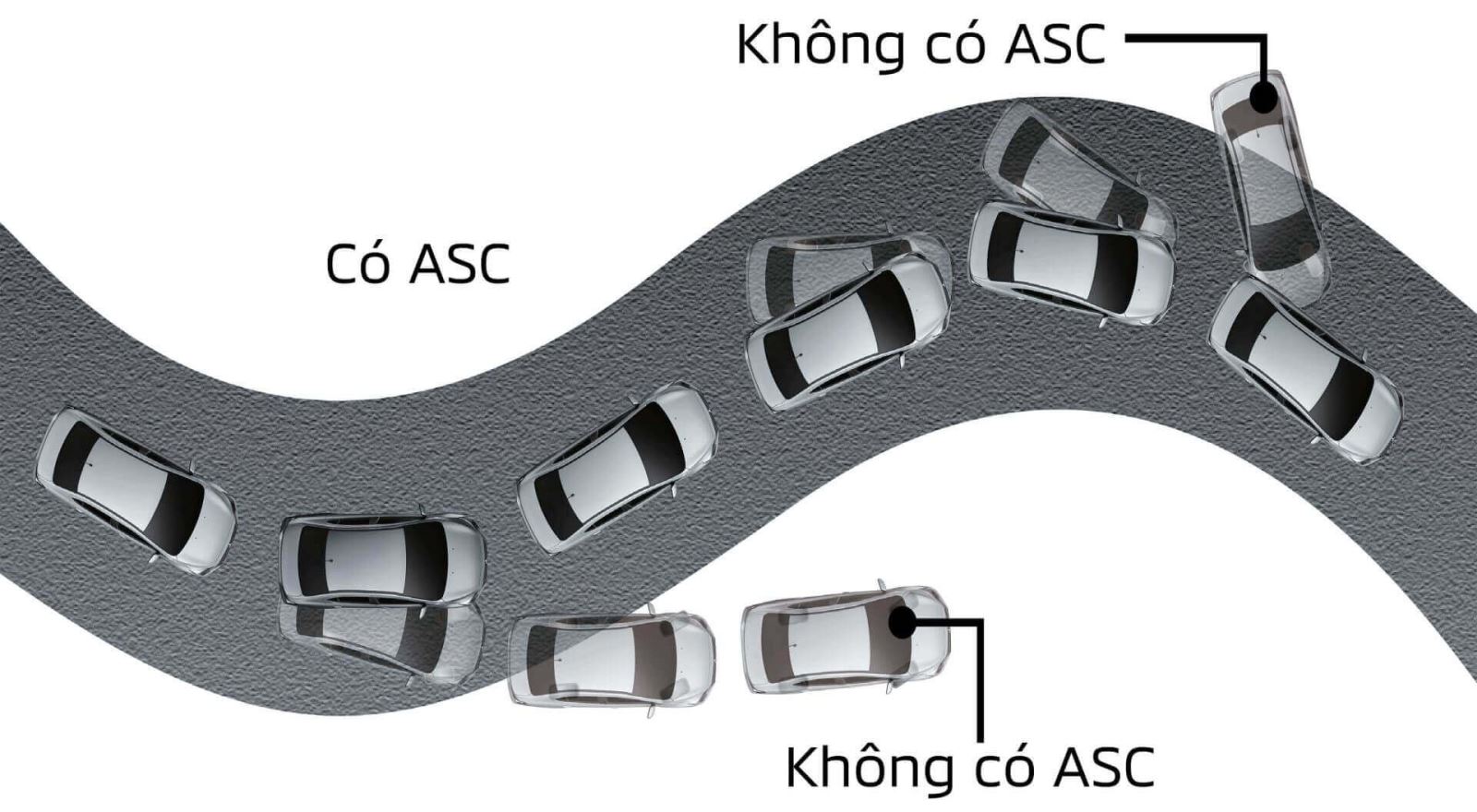 Hệ thống cân bằng điện tử sử dụng các cảm biến để phân tích chuyển động và độ trượt của xe. Bằng cách kiểm soát công suất động cơ và lực phanh lên từng bánh xe riêng biệt, hệ thống ASC giúp duy trì sự ổn định của xe ngay cả trong điều kiện trơn trượt